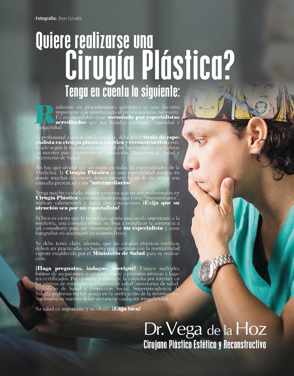 Pide presupuesto y asesoría con el Dr. Edwin Vega De La Hoz. Es un profesional de la medicina, totalmente capacitado para realizar Cirugías plásticas y tratamientos estéticos a pacientes con necesidades estéticas como las tuyas.
